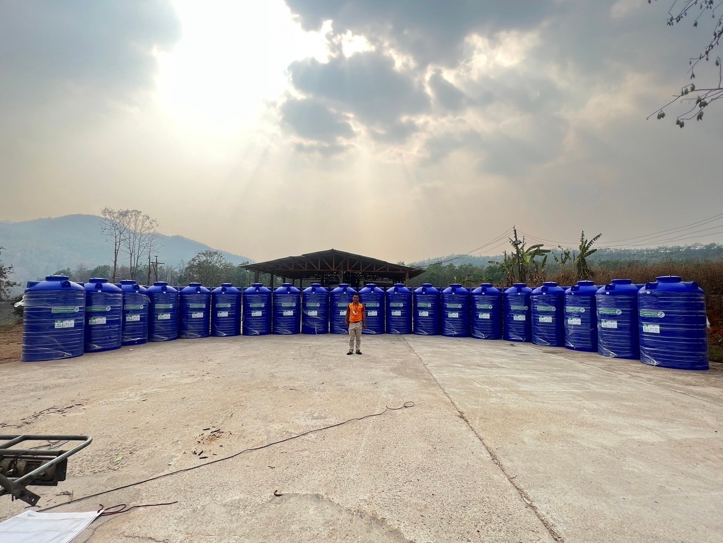 ถังเก็บน้ำบนดินสีน้ำเงิน
